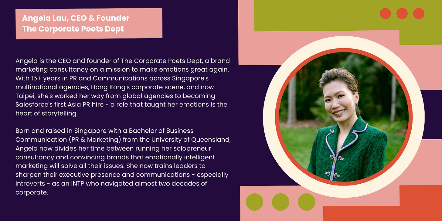 Angela Lau is the CEO and Founder of the Corporate Poets Dept.