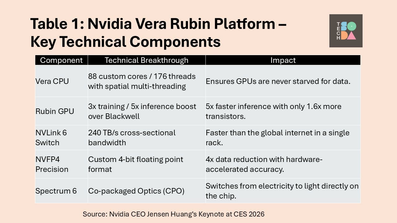 Nvidia’s answer is a radical co-design approach. Instead of a single GPU, they have unveiled a six-chip constellation known as the Vera Rubin platform. By controlling everything from the CPU to the fiber-optic networking, Nvidia aims to drop inference costs by a factor of 10.