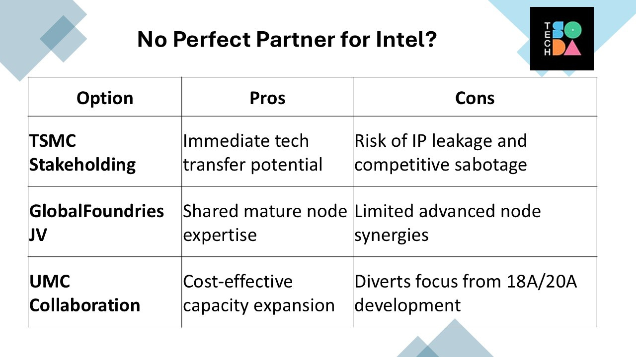 As TSMC will be accelerating expansions of its capacities in the United States and Taiwan for advanced chips, recruiting TSMC to be a minor stakeholder for Intel Foundry would not be in the best interest of Intel. Why? If TSMC becomes a stakeholder, they would be able to know what Intel is doing for a comeback. Competition is good for free markets. Before Intel can recover its competitiveness in manufacturing, it needs to relearn its skills and avoid taking unnecessary risks.