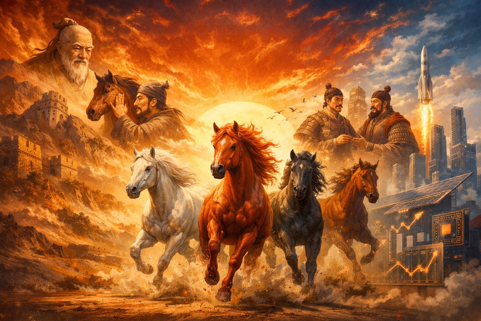 2026 marks the arrival of the Bing-Wu Year (丙午年), known in the Chinese sexagenary cycle as the Year of the Fire Horse. In traditional cosmology, Fire represents high-intensity energy and irreversible change, while the Horse symbolizes speed, ambition, and relentless competition. Sixty years ago, the previous Bing-Wu (Fire Horse) year coincided with the beginning of China’s decade-long Cultural Revolution.